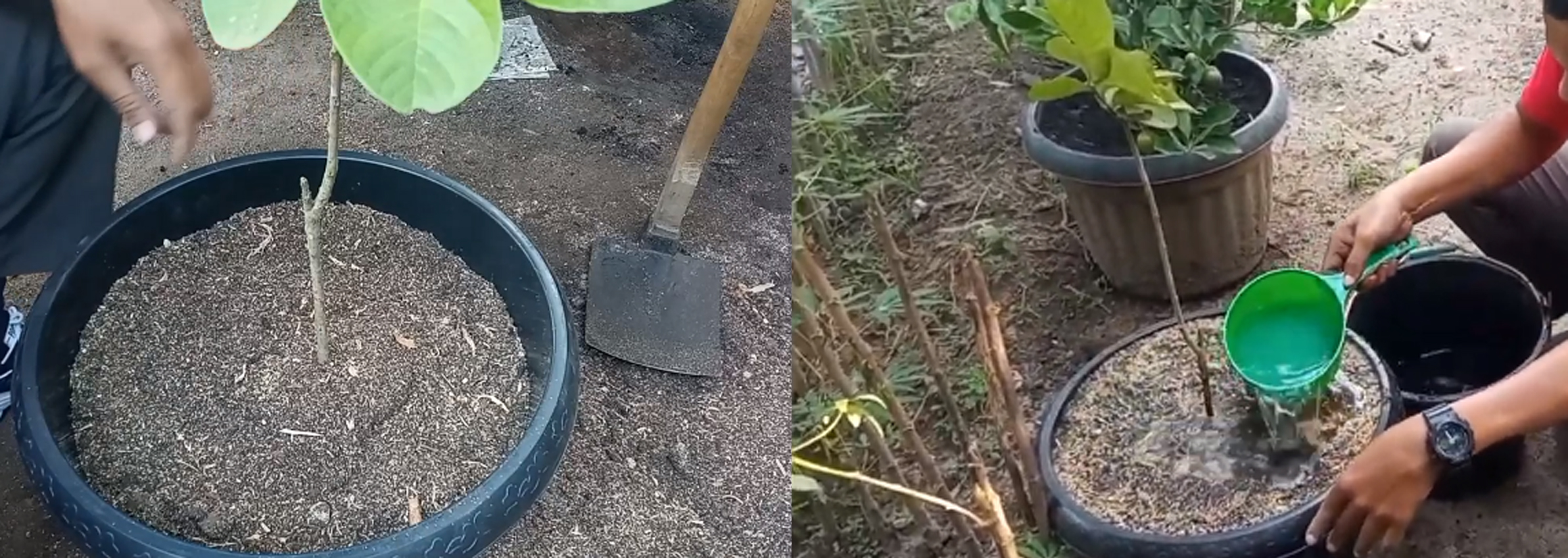 Setelah pemupukan lakukan penyiraman agar nutrisi dari pupuk dapat segera meresap ke dalam media tanam dalam pot.