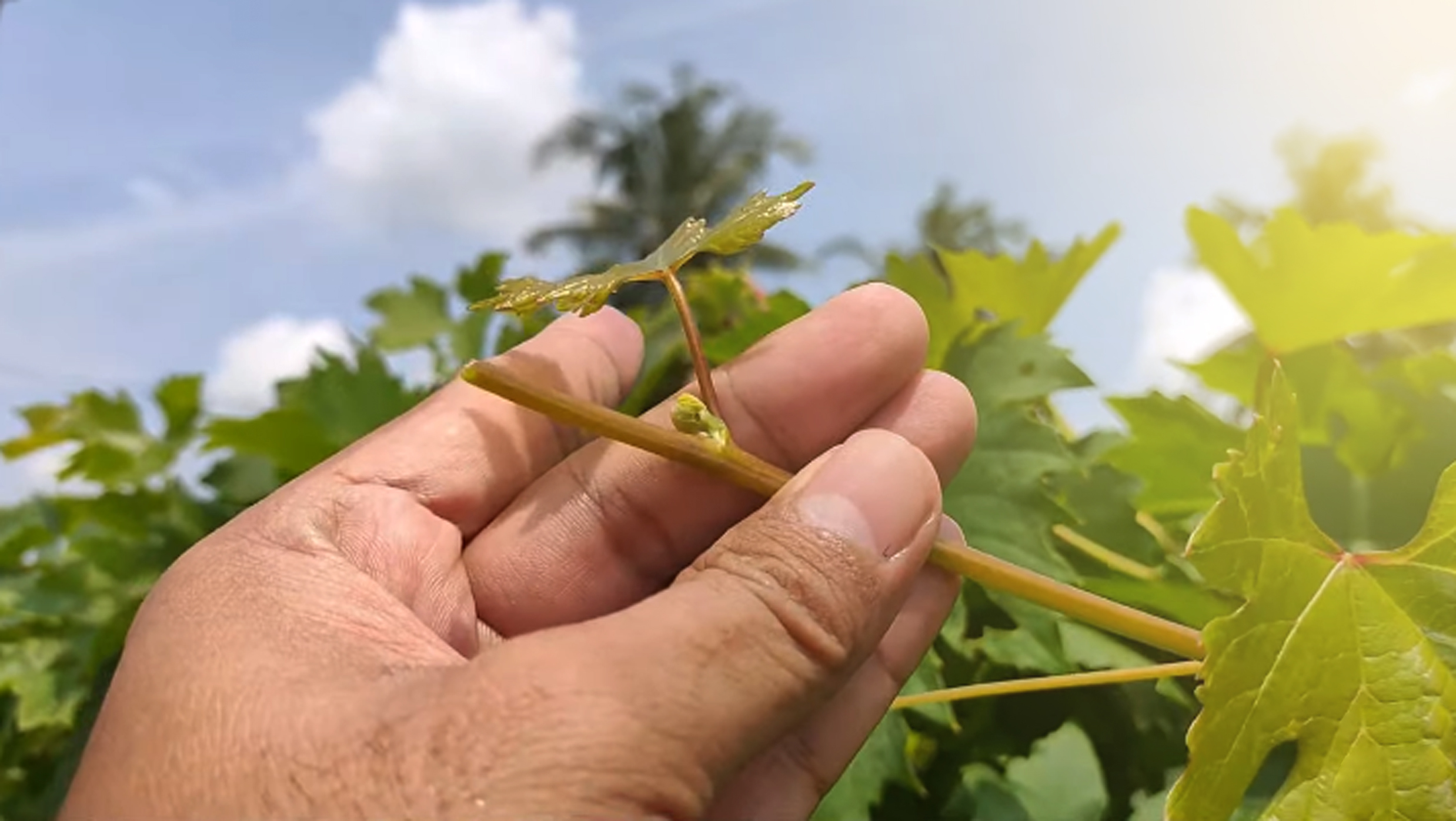 2. Potes pucuk dilakukan setelah melakukan pemupukan pembuahan pada tanaman anggur tersebut, jadi tanaman memang sudah benar-benar siap untuk berbuah.