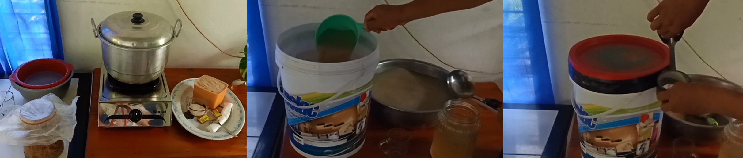• Masukkan 1 liter air matang yang telah dingin ke dalam toples berisi akar bambu.