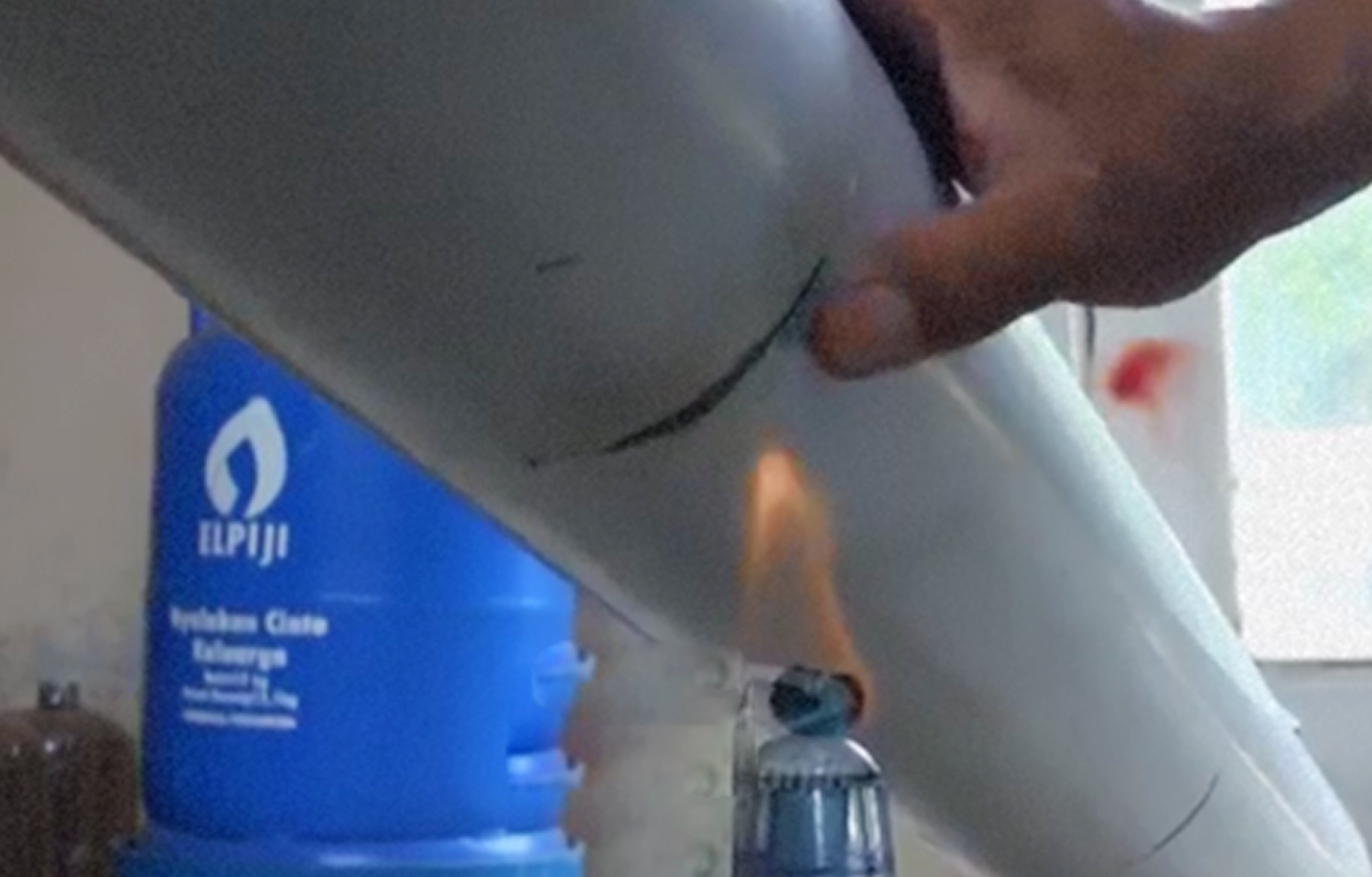 - Bagian bawah bekas gergaji tadi dipanaskan hingga paralon menjadi lebih lentur