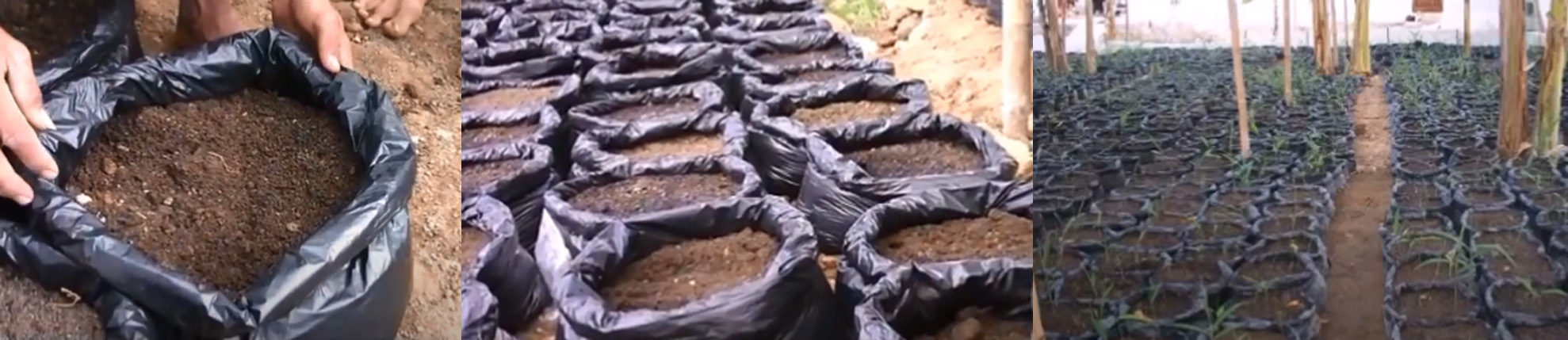 Media tanam yang digunakan untuk menanam jahe ini adalah tanah gembur sedikit berpasir dan pupuk kandang yang sudah matang atau pupuk kompos dengan perbandingan 1:1, aduk dan campurkan hingga merata. Siapkan polybag dengan ukuran besar yaitu 60×40, karena tanaman jahe akan tumbuh besar dan memerlukan banyak tempat untuk pertumbuhan rimpangnya. Masukkan media tanam ke dalam polybag tersebut hingga 1/4 bagian polybag, lipat bagian polybag yang tersisa.