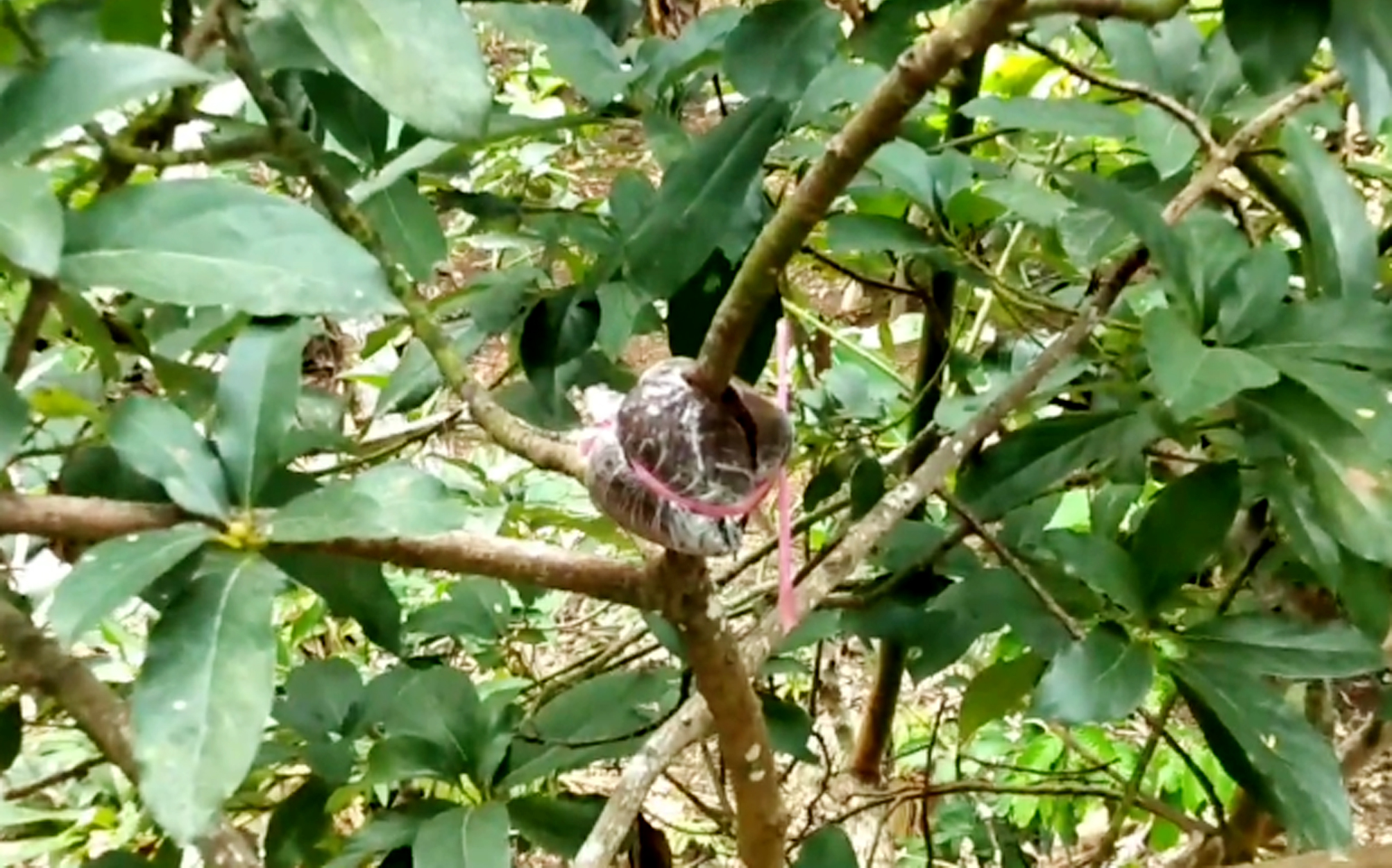 Belah plastik berisi media cangkok tersebut dan balutkan pada keratan hingga tertutup sempurna kemudian diikat.