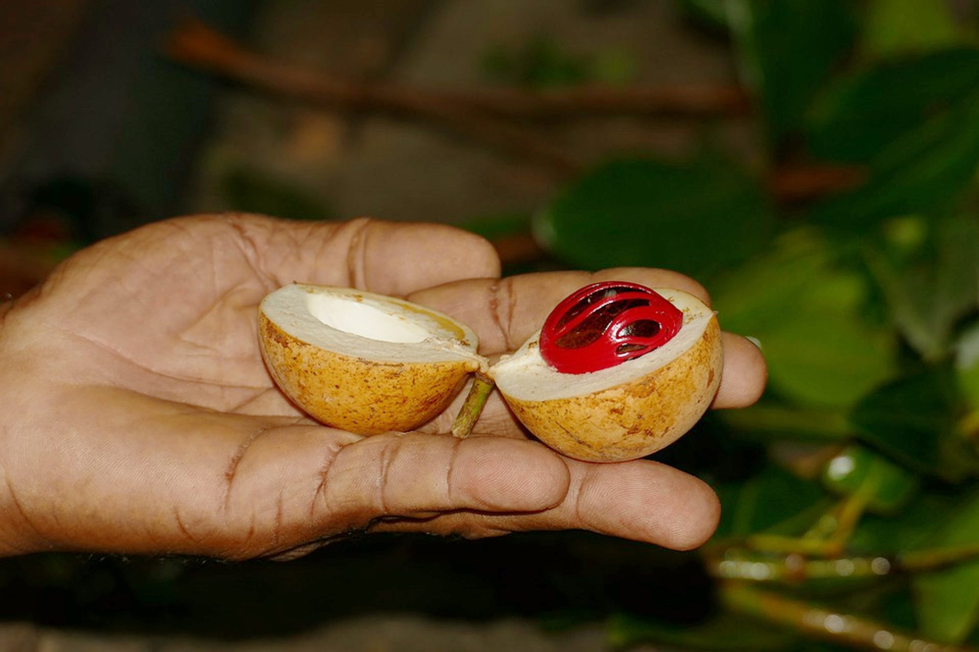 Setelah buah pala dengan kriteria tersebut diperoleh, kupas daging buahnya, kupas pula kulit tipisnya yang berwarna merah.