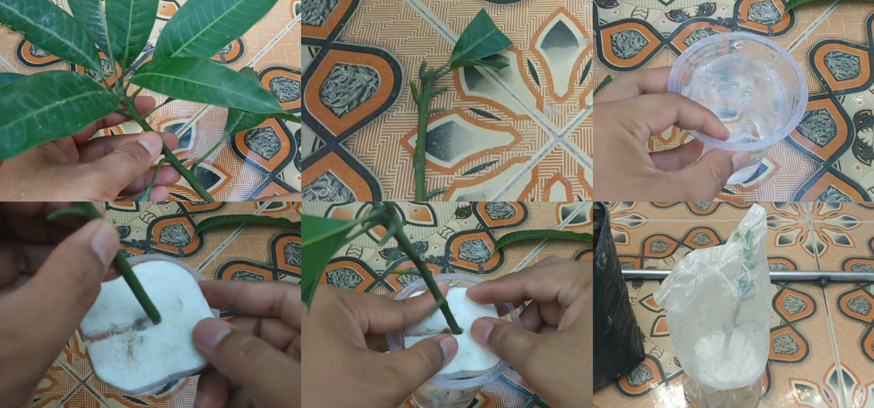 Sayat/kupas kulit batang pada pangkal batangnya hingga terkelupas dengan beberapa sayatan, sebagai tempat tumbuhnya akar nantinya.