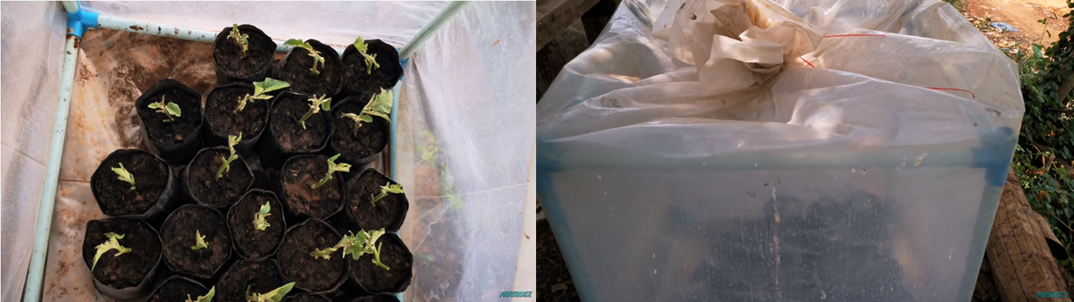 Masukkan polybag stek pada sungkup/greenhouse sederhana tersebut, susun rapi di dalamnya, kemudian ikat rapat mulut plastik pada bagian atasnya.